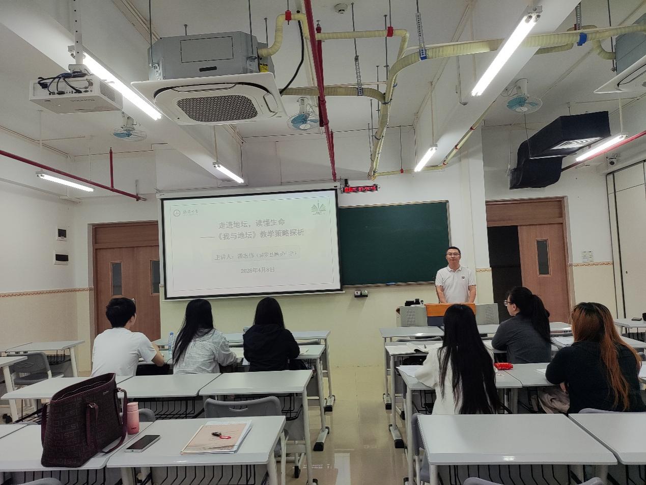 博罗中学老师潘志伟以《我与地坛》为题开展专题教学分享,从文本解读、教学设计、教学反思三大板块深入剖析,结合中学教学实际梳理实用思路,为研究生搭建理论与实践衔接桥梁。