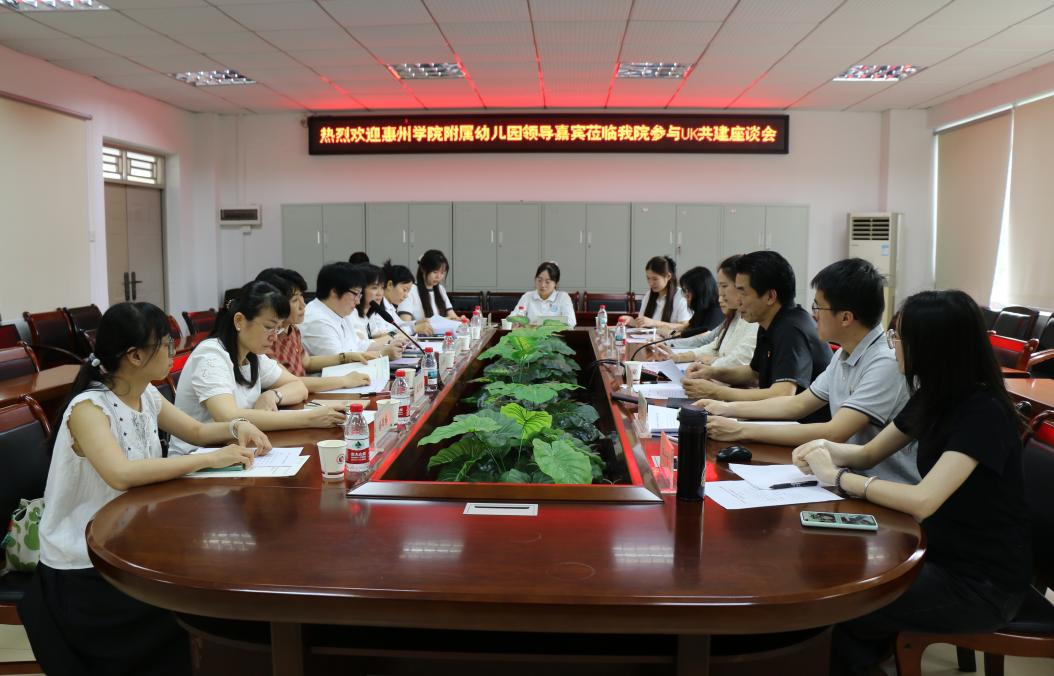 4月17日下午,惠州学院文学与传媒学院学生党支部与附属幼儿园党支部在旭日楼422会议室举行结对共建座谈会。会议以“深化教育协同,共促UK共建高质量发展”为主题,立足党建引领、校地协同、实践育人,推动双方合作走深走实、提质增效。文学与传媒学院党委副书记施少翰、附属幼儿园党支部书记、执行园长林海娟出席会议,双方党支部委员、教师代表、学生党员及学生干部代表参加座谈。会议由学院辅导员张雯主持。