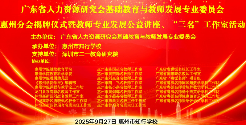 广东省人力资源研究会基础教育与教师发展专业委员会惠州分会举行揭牌仪式